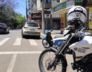 Um adolescente de 16 anos foi apreendido na Avenida Brasil, esquina com a rua Tiradentes, no centro de Passo Fundo, ao ser flagrado conduzindo uma motocicleta Honda Biz de cor azul com sinais de adulteração. A ação foi realizada pelo 2º Esquadrão da Brigada Militar, com apoio da ROCAM.