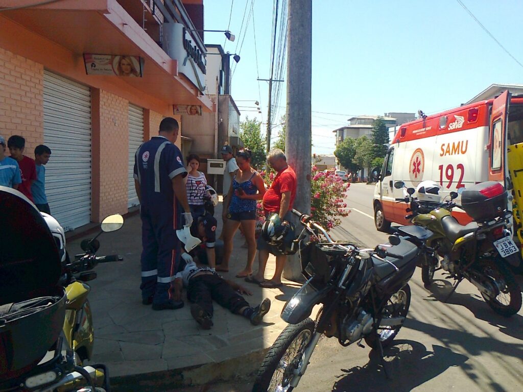Por volta das 12h15 de quinta-feira,06, policiais do Pelotão de Operações Especiais (POE), da Brigada Militar, atenderam a um acidente de trânsito na rua Coronel Pelegrini, esquina com a Plácido de Castro, Vila Rodrigues. No local estava um adolescente de 17 anos que conduzia, de chinelos, uma motocicleta Sundown, de cor prata, com placas do município de Ciriaco. Ao parar o veículo para acessar a rua Placido de Castro, o adolescente teve a traseira da moto atingida pela motocicleta Yamaha/Lander, de cor preta e com placas de Passo Fundo, conduzida por Rodrigo da Silva Gomes, 33 anos.