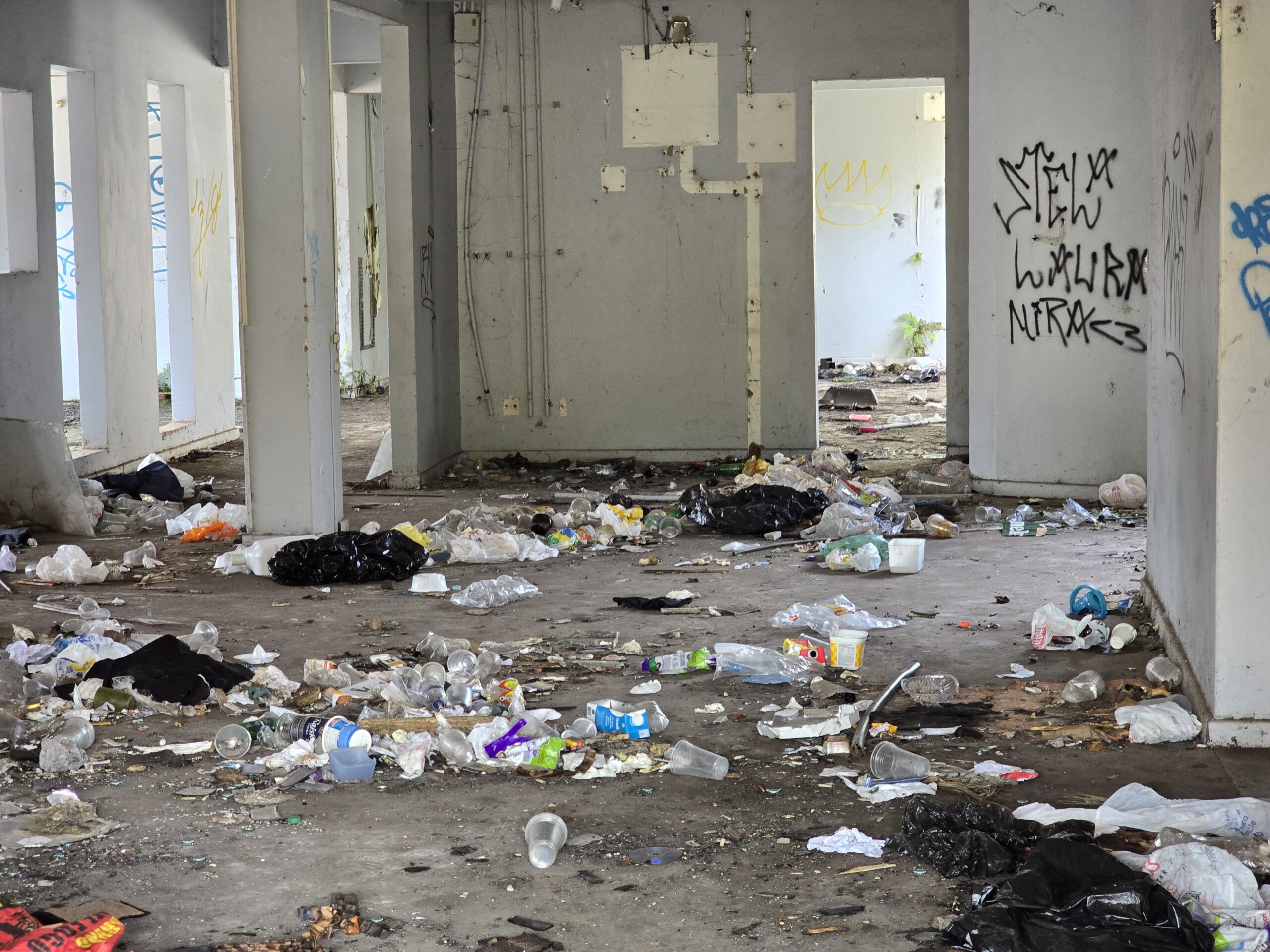 Com o passar dos anos, a estrutura se tornou um abrigo improvisado para pessoas em situação de vulnerabilidade, além de um local de despejo de lixo doméstico, móveis quebrados, eletrodomésticos inutilizados e até animais abandonados. Cães e gatos são frequentemente deixados na área, vivendo em condições precárias, o que levanta ainda mais preocupação sobre o risco de transmissão de doenças.