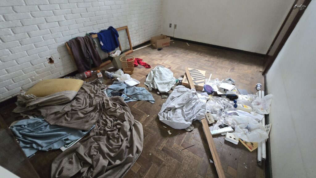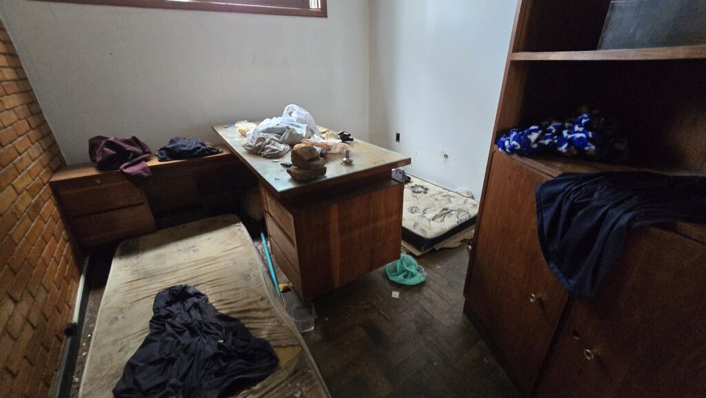 O imóvel vem sendo ocupado por pessoas em situação de rua, principalmente no período noturno, quando os problemas se agravam. No interior do prédio, foram encontrados restos de alimentos, roupas, colchões e grande quantidade de lixo espalhado pelos cômodos. Também foi percebido forte odor e indícios claros de uso de entorpecentes, reforçando os relatos feitos pela comunidade.