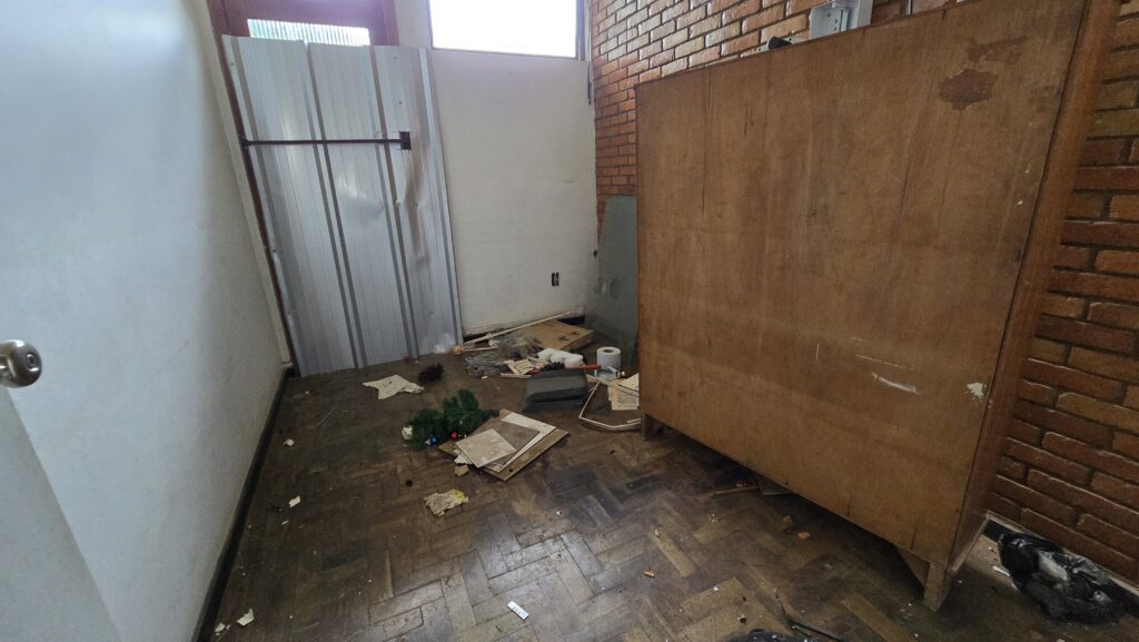 A reportagem policial do Grupo Planalto de Comunicação teve acesso ao interior do antigo prédio da Secretaria de Obras Públicas, imóvel pertencente ao Estado e vinculado à 7ª CROP Coordenadoria Regional de Obras Públicas, localizado na Rua Nascimento Vargas, no Centro de Passo Fundo, ao lado do Centro de Esporte e Lazer Fredolino Chimango.
