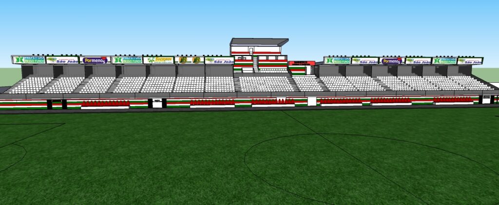 ampliação do estádio para aproximadamente 20.000 lugares; 2 vestiarios profissionais; 2 vestiários para categorias de base; 2 vestiários para arbitragem; 1 academia e 1 edifício residencial próprio, com aproximadamente 20 apartamentos para atender jogadores e delegação.