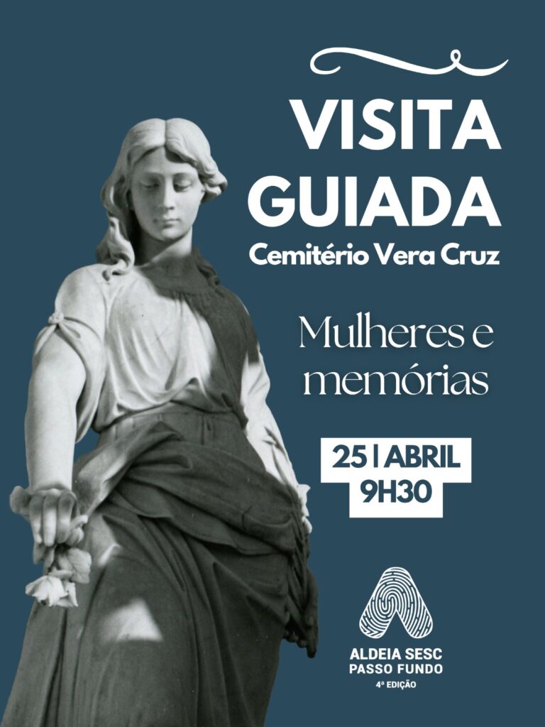 Neste sábado, dia 25 de abril, às 9h30min, será realizado o “Passeio Guiado: mulheres e memórias no Cemitério Vera Cruz”. A atividade propõe explorar o espaço cemiterial como lugar de memória e patrimônio, a partir de túmulos, inscrições e monumentos que permitem refletir sobre valores sociais, práticas culturais e processos históricos que marcaram a formação da cidade.