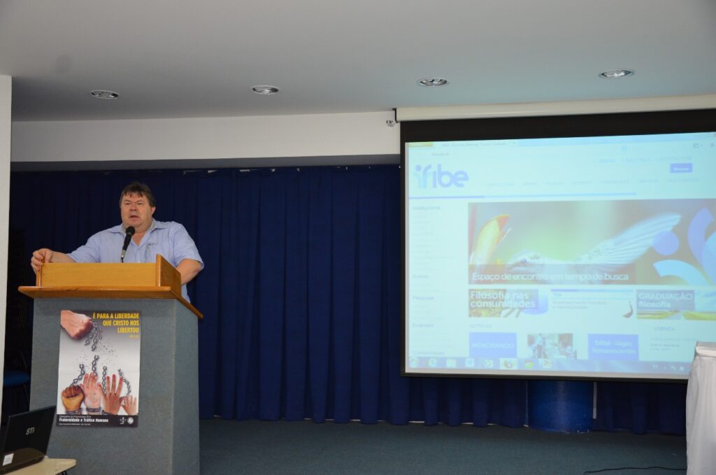 Tendo como base o tema Fraternidade e Tráfico Humano o professor apresentou diversos apontamentos sobre questões relativas a bioética nos séculos XX e XXI e sua direta relação com o tráfico de pessoas, tráfico de órgãos, exploração para o trabalho e também a exploração sexual.