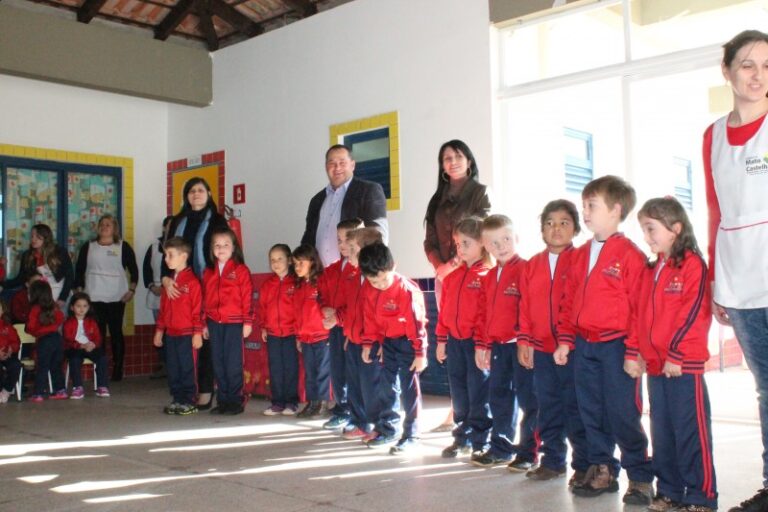 A Secretaria Municipal de Educação realizou a entrega de uniformes escolares aos alunos da rede municipal de ensino. Na EMEI Rosalina Manfroi, na