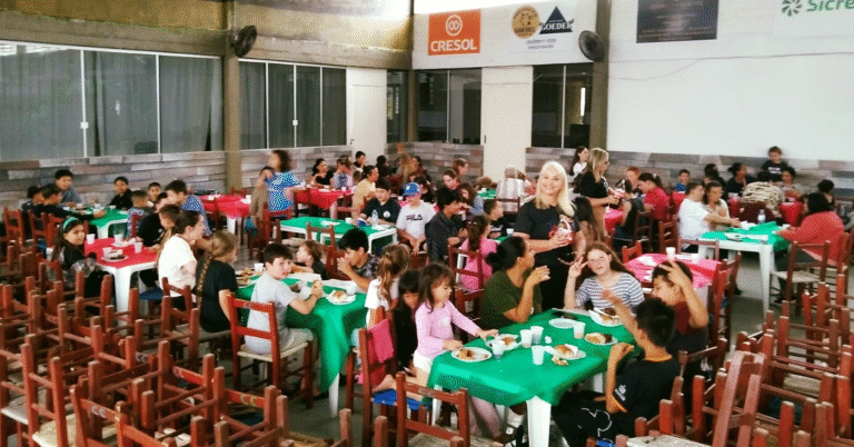 A tarde da quarta-feira (10/12) foi marcada por integração e convivência no Salão da Comunidade Católica, onde famílias e crianças atendidas pelos
