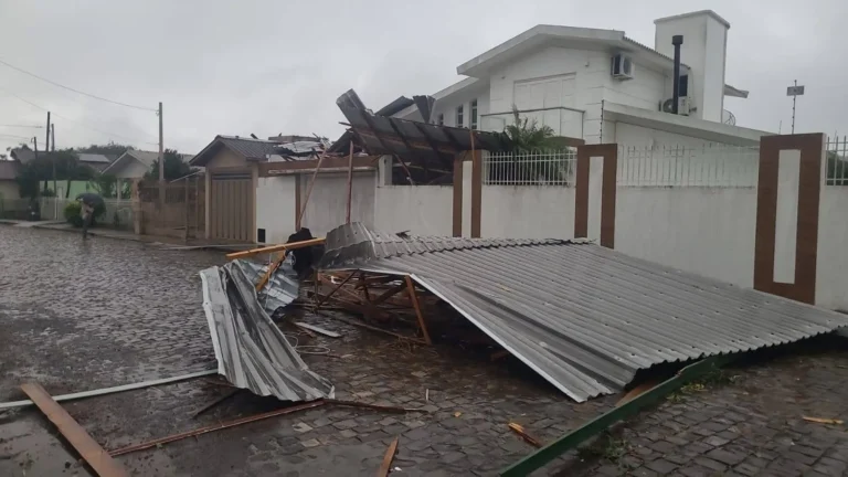 Na manhã desta sexta-feira, 09/05, um forte temporal atingiu a cidade de Soledade, provocando destelhamentos em várias residências, quedas de árvores e