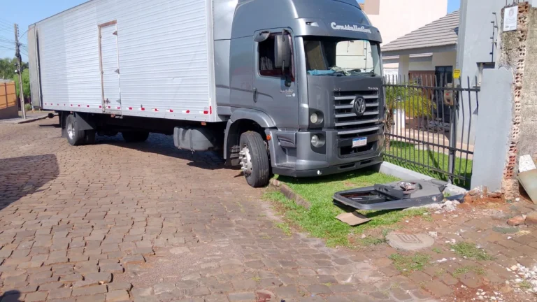 Na manhã desta terça-feira (28), um caminhão que realizava a descarga de mercadorias em um supermercado perdeu o controle em uma descida