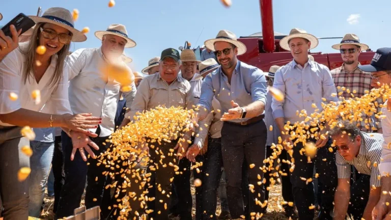 Às margens de um mar dourado que se perde na vastidão, encontrando o azul límpido do horizonte, a máquina arranca da terra