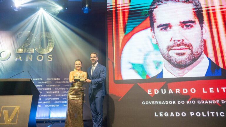 O governador Eduardo Leite foi um dos homenageados no evento que celebra os 20 anos da Revista Voto, na Sociedade Hípica Paulista,