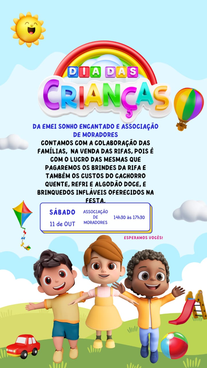 Neste sábado, 11 de outubro, a Escola Municipal de Educação Infantil, em parceria com a associação de moradores do bairro Hípica, promove