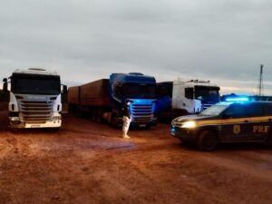 Na tarde desta segunda-feira (17), a Polícia Rodoviária Federal flagrou três caminhões com quase 27 toneladas de excesso de peso durante uma