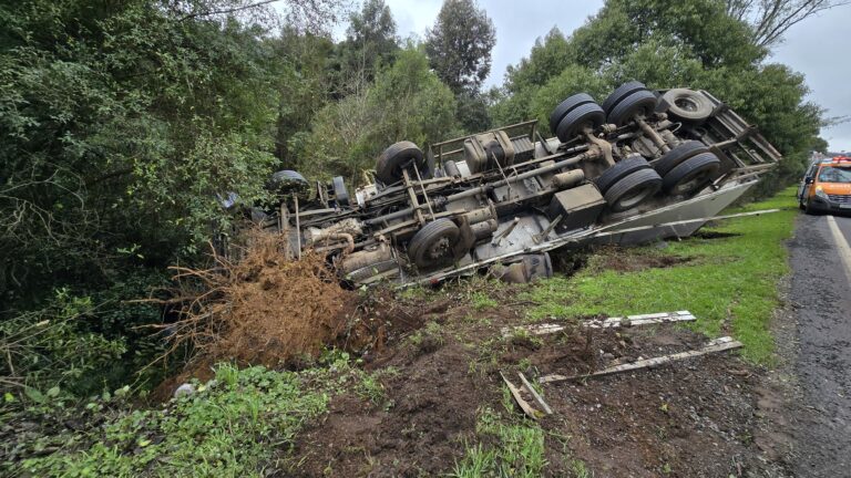 Um caminhão carregado com carne capotou no começo da tarde desta segunda-feira (28) na ERS-135, entre Coxilha e Passo Fundo. O acidente