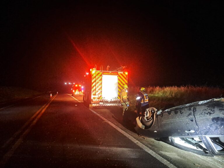Na noite deste domingo (24), por volta das 22h, o Corpo de Bombeiros Militar de Carazinho atendeu a um capotamento na BR-285,