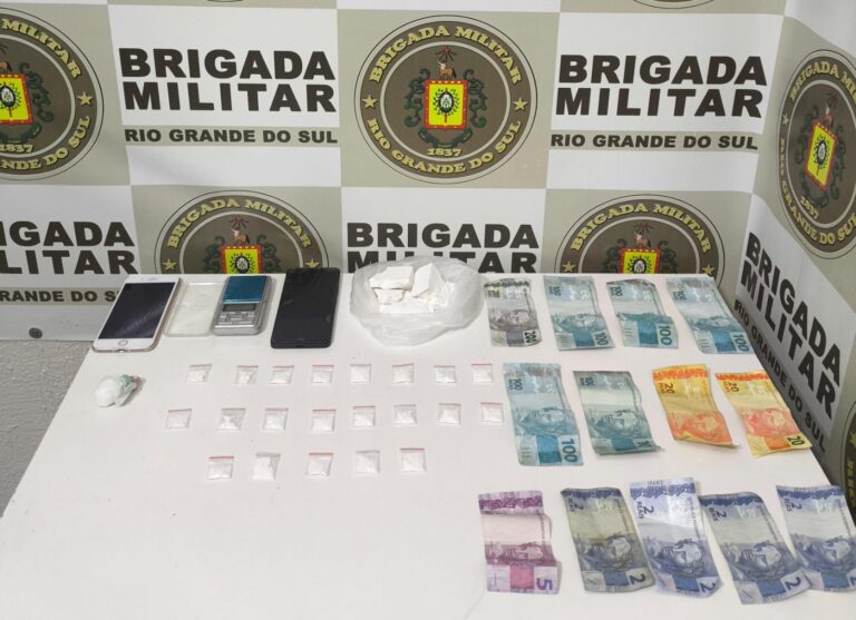Na noite de domingo (8), a Brigada Militar prendeu um homem e uma mulher por tráfico de drogas e associação para o