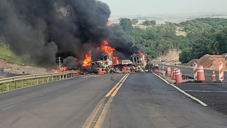 Um grave acidente entre dois caminhões causou um incêndio e bloqueou totalmente a BR-386, em Mormaço, no norte do Estado, na manhã