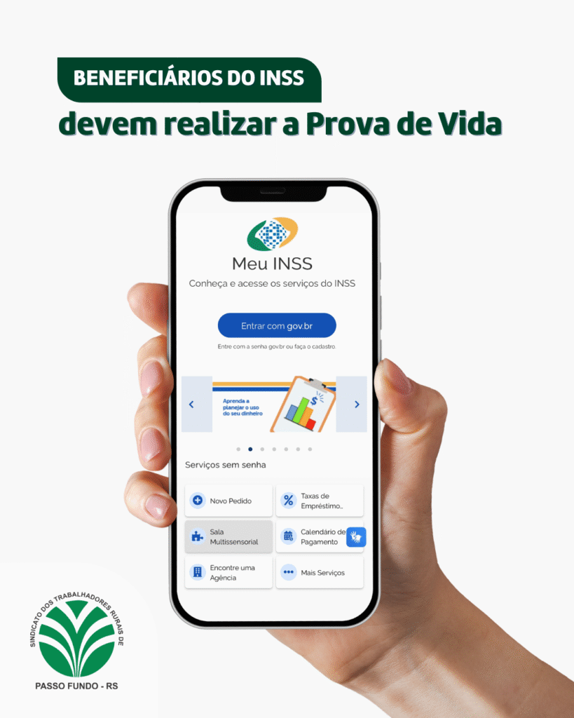 O Sindicato dos Trabalhadores Rurais de Passo Fundo, Coxilha e Mato Castelhano reforça a importância de os aposentados e pensionistas ficarem atentos ao comunicado do INSS, que notificou quatro milhões de beneficiários sobre a necessidade de realizar a Prova de Vida. O aviso é enviado diretamente pelo extrato bancário e o prazo para regularização é de 30 dias após o recebimento da notificação.