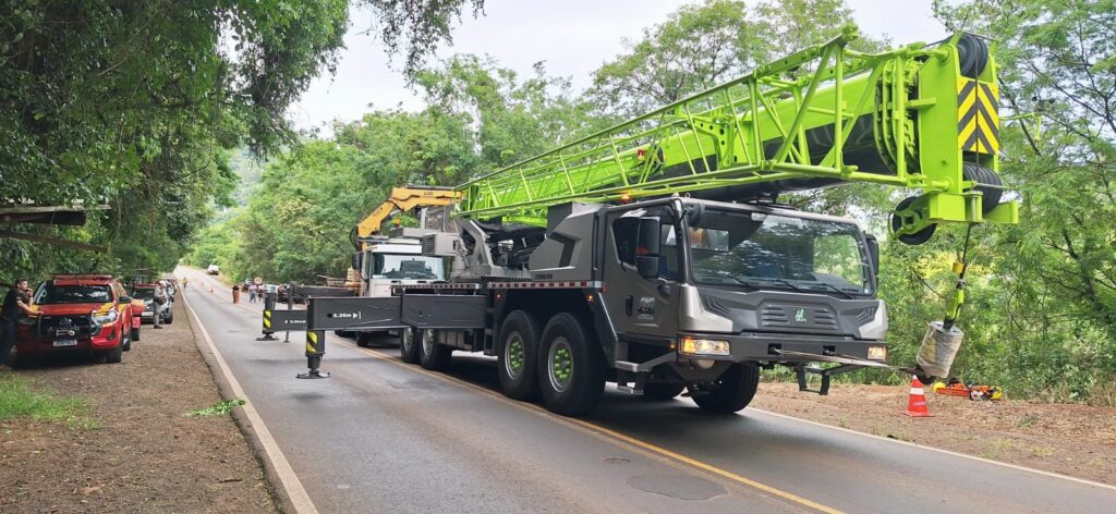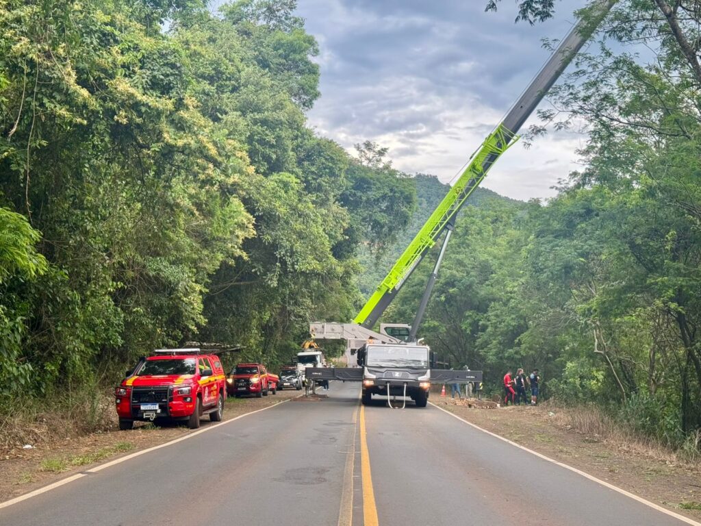 O Corpo de Bombeiros Militar concluiu, na noite desta sexta-feira (16), uma complexa operação de resgate e remoção da caminhonete que havia caído no rio após um grave acidente de trânsito registrado na madrugada, no km 1 da RS-480, em Nonoai, no Norte do Rio Grande do Sul, nas proximidades da ponte do Goio-Ên, na divisa entre o Rio Grande do Sul e Santa Catarina.