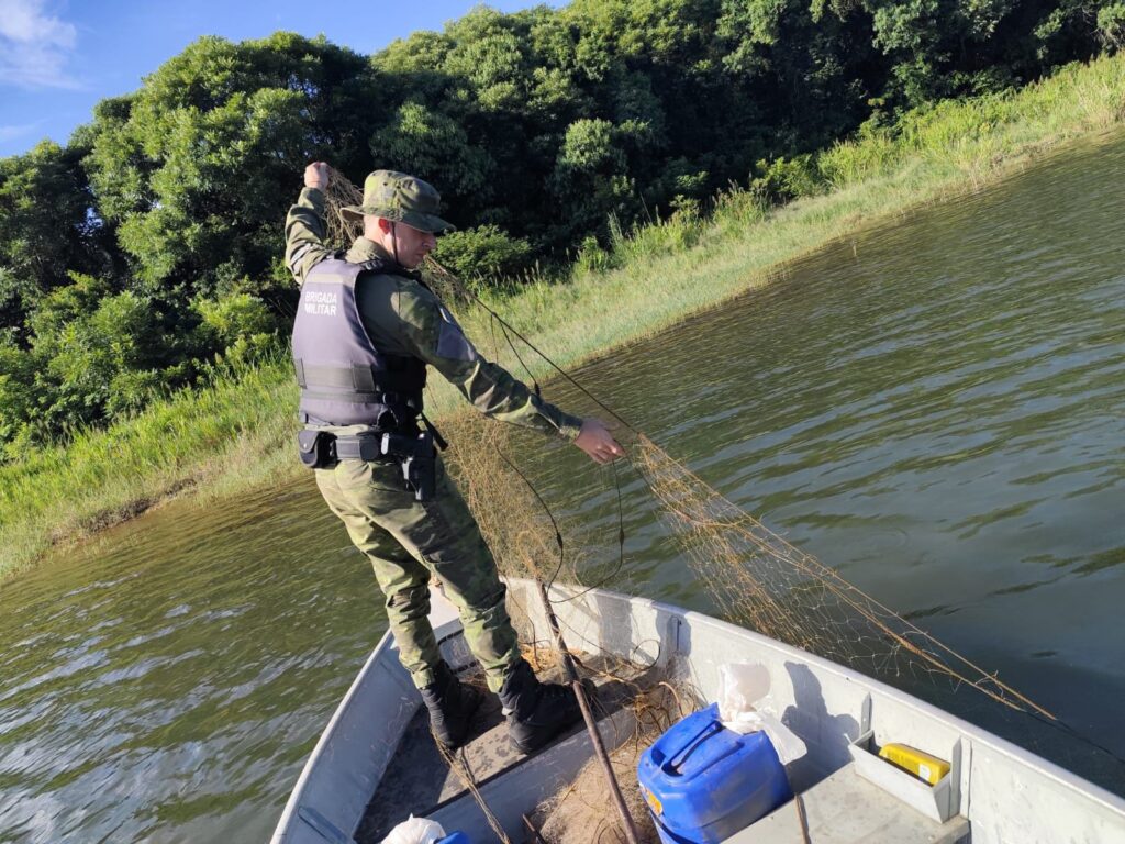 A ação teve como foco o patrulhamento aquático e o combate à pesca ilegal durante o período do Defeso da Piracema, que ocorre entre 1º de outubro de 2025 e 31 de janeiro de 2026. Durante a operação, os policiais militares navegaram pelo lago da usina, que integra a bacia hidrográfica do Rio Uruguai, realizando abordagens a embarcações e pescadores que estavam às margens.