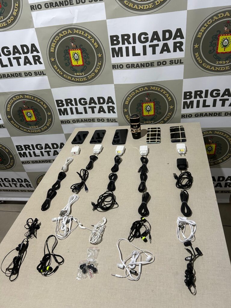 Com ele, foram encontrados aparelhos celulares, carregadores, cabos USB, fones de ouvido, acessórios e um frasco de perfume. Parte dos objetos também foi recuperada com apoio da Superintendência dos Serviços Penitenciários (SUSEPE), incluindo um pacote que permaneceu sobre o telhado do presídio após a tentativa frustrada de arremesso.