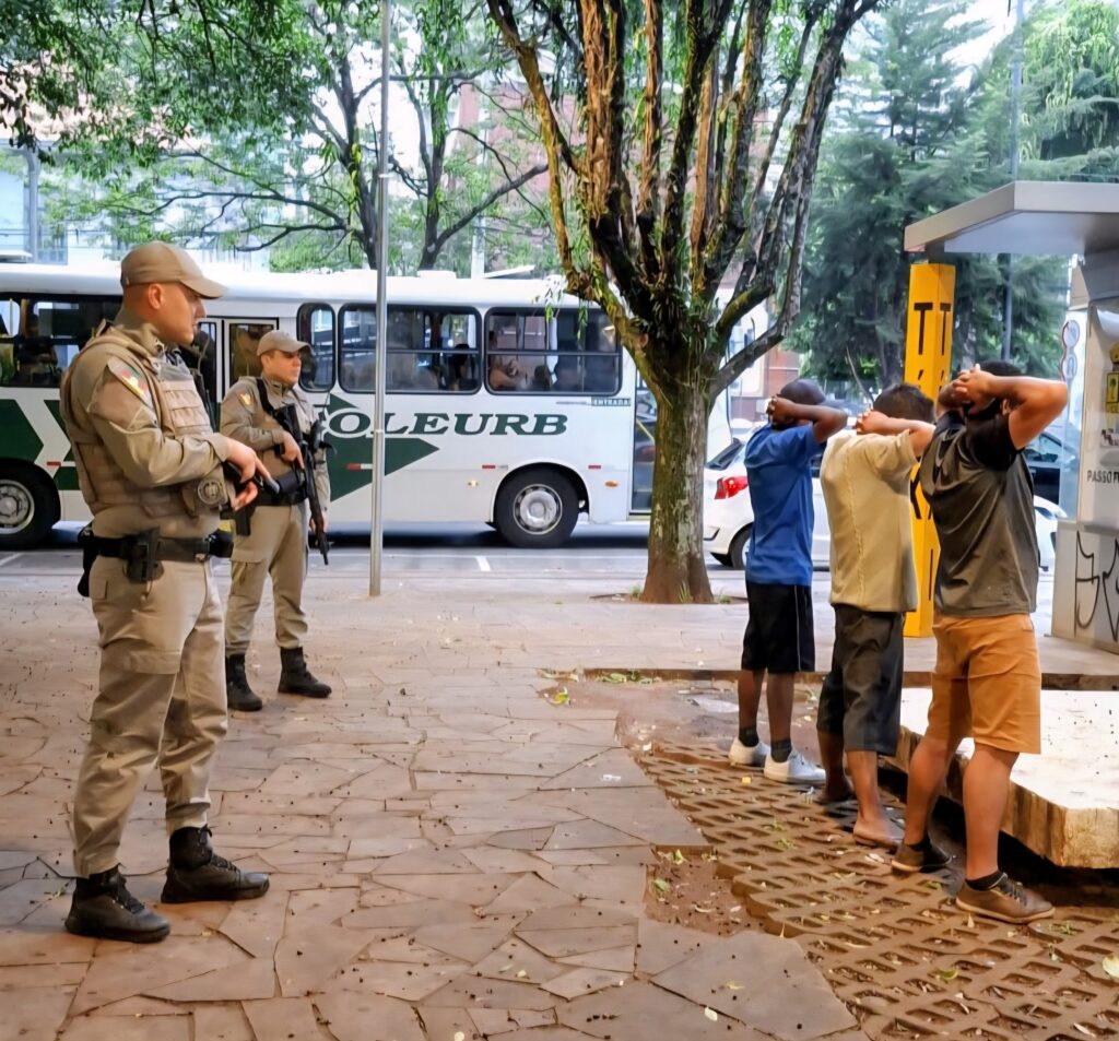 De acordo com informações obtidas pelo repórter Jeferson Vargas, a guarnição realizava policiamento de rotina quando identificou três indivíduos abordando pedestres no local, causando importunação e transtornos a quem passava pela praça.