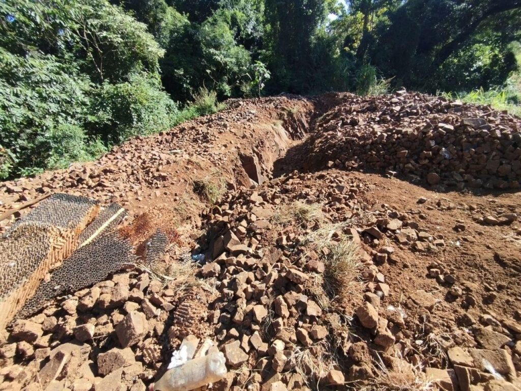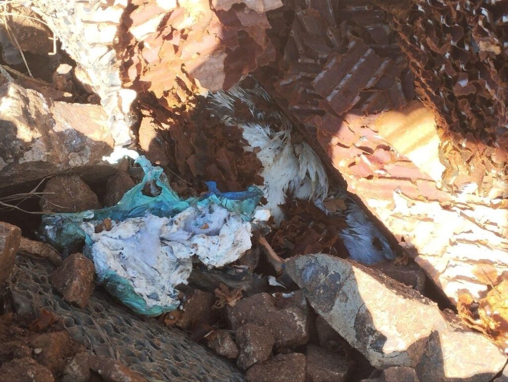 A Brigada Militar flagrou o descarte irregular de carcaças de frangos diretamente no solo, em uma propriedade rural no interior de Trindade do Sul.