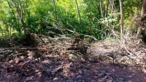 Em outro ponto do município, o 3º BABM identificou a derrubada de 3.500 metros quadrados de vegetação nativa, também sem a devida autorização.