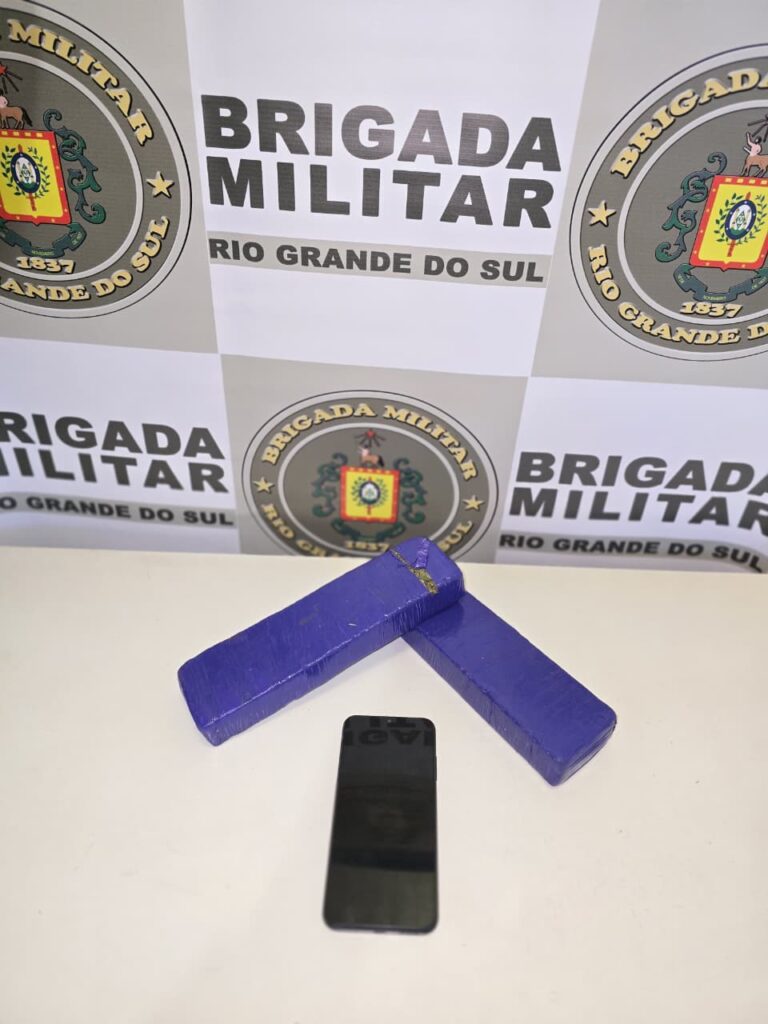 O suspeito foi detido, enquanto outra equipe perseguiu o carro. Poucos metros depois, o motorista abandonou uma sacola contendo dois tabletes de maconha, mas conseguiu fugir.