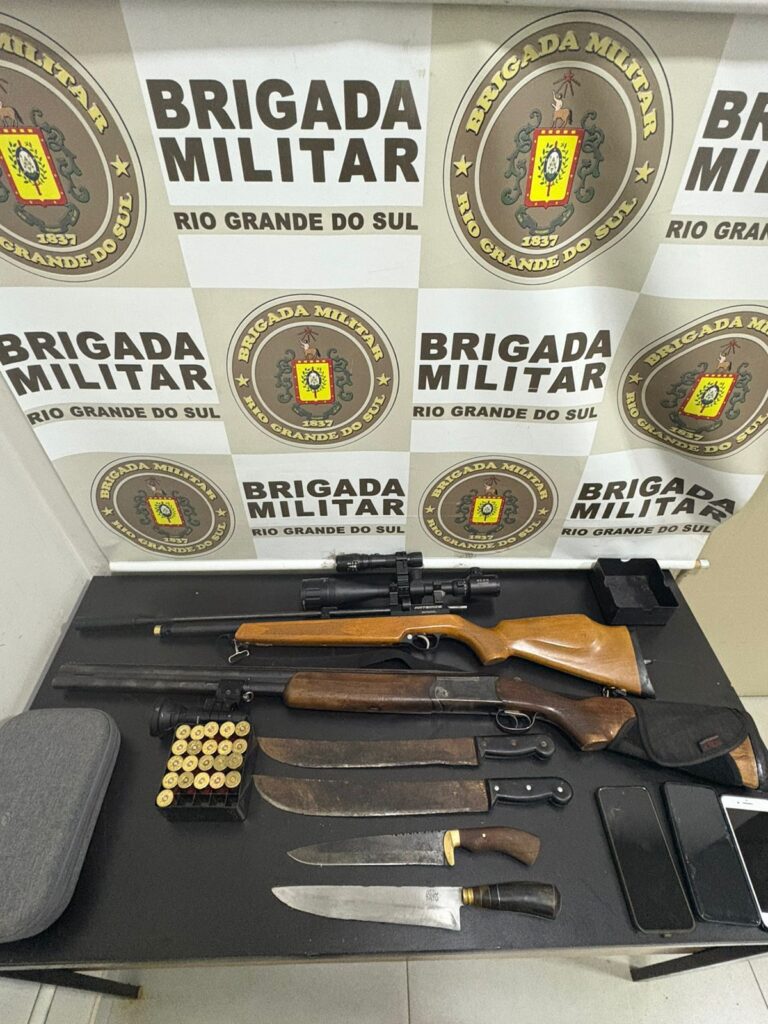 Na madrugada desta sexta-feira (21), a Brigada Militar, por meio do 3º RPMon, prendeu três homens por porte ilegal de arma de fogo e crime ambiental na cidade de Tapejara.