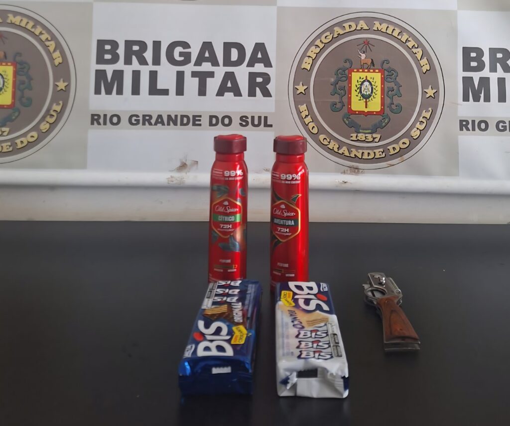 A ocorrência foi atendida por uma equipe da ROCAM do 3º Regimento de Polícia Montada, após informações sobre o crime. Durante as buscas, o suspeito foi localizado e abordado. Com ele, os policiais encontraram produtos subtraídos do estabelecimento e uma faca.
