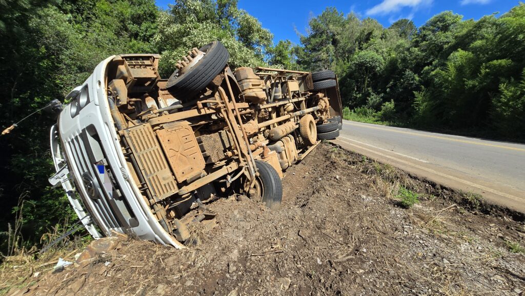 Na manhã desta sexta-feira (26), um acidente de trânsito foi registrado na ERS-324, no km 198, entre Passo Fundo e Marau, nas proximidades do local conhecido como Passo do Chinelo. Um caminhão Volkswagen Constellation 26.260, emplacado em Joaçaba, que vinha de Chapecó com destino a Marau, transportando frangos, acabou tombando após o motorista perder o controle da direção.