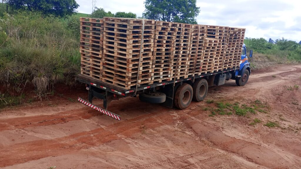No momento da localização, o caminhão ainda estava carregado com pallets. Nenhuma pessoa foi encontrada nas proximidades, e os autores do furto não foram localizados.