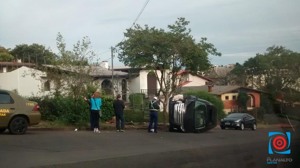 Motorista perde controle na rua Bento Gonçalves em Passo Fundo. Com o impacto do veículo no cordão da calçada a caminhonete acabou tombando. O condutor não ficou ferido e Agentes da Guarda Municipal de Trânsito realizam o registro dos fatos.