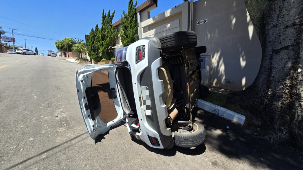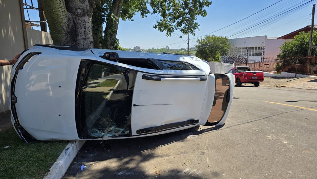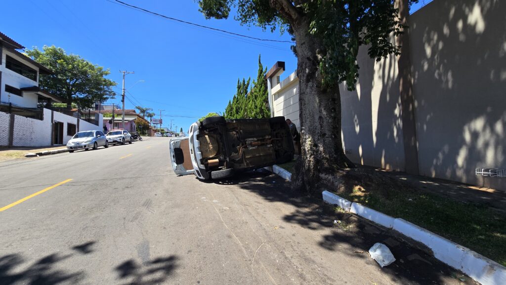Capotamento é registrado no bairro Boqueirão, em Passo Fundo Acidente ocorreu na rua Coronel Pedro Lopes Oliveira após conversão na avenida Morom