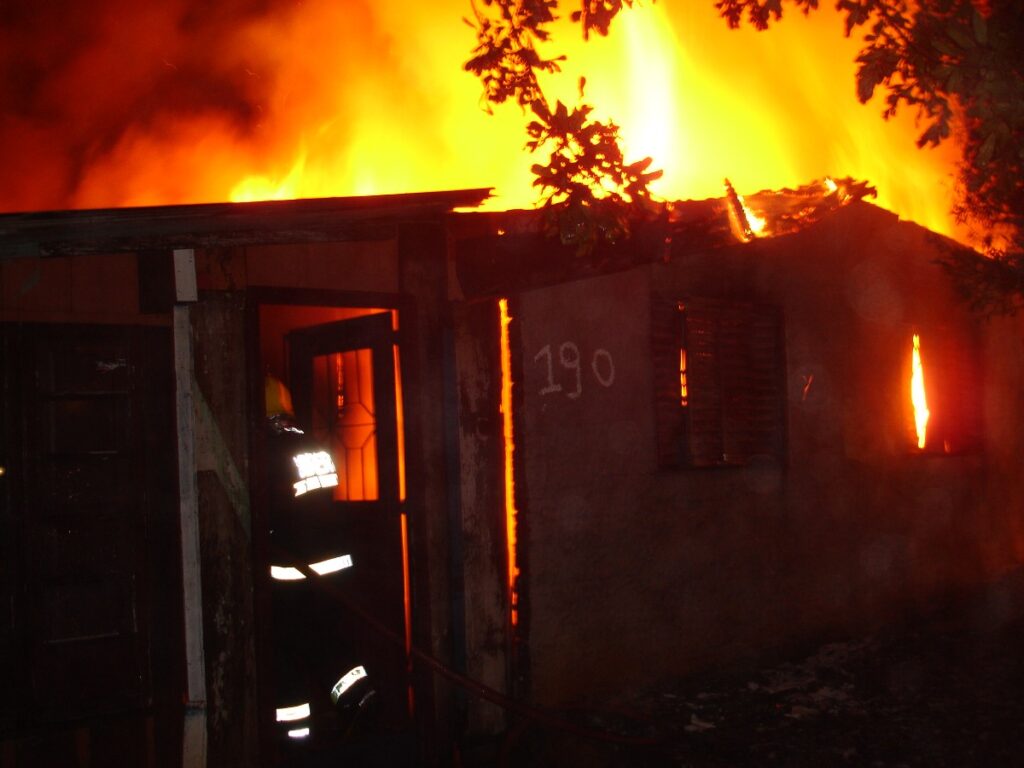 Diversos bombeiros atuaram na ação de combate ao incêndio e utilizaram dois caminhões para controlar as chamas, que em poucos minutos destruiu o imóvel.