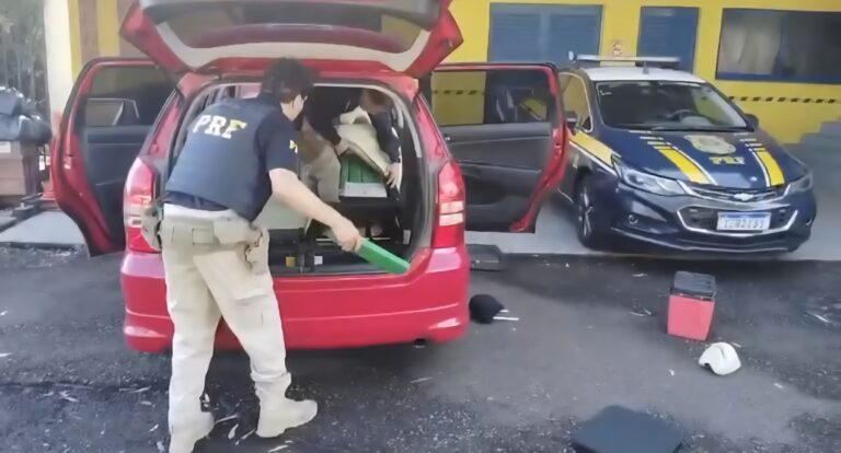 Na manhã deste domingo (28), a Polícia Rodoviária Federal apreendeu 90,8 kg de maconha durante uma ação de fiscalização na BR-480, em