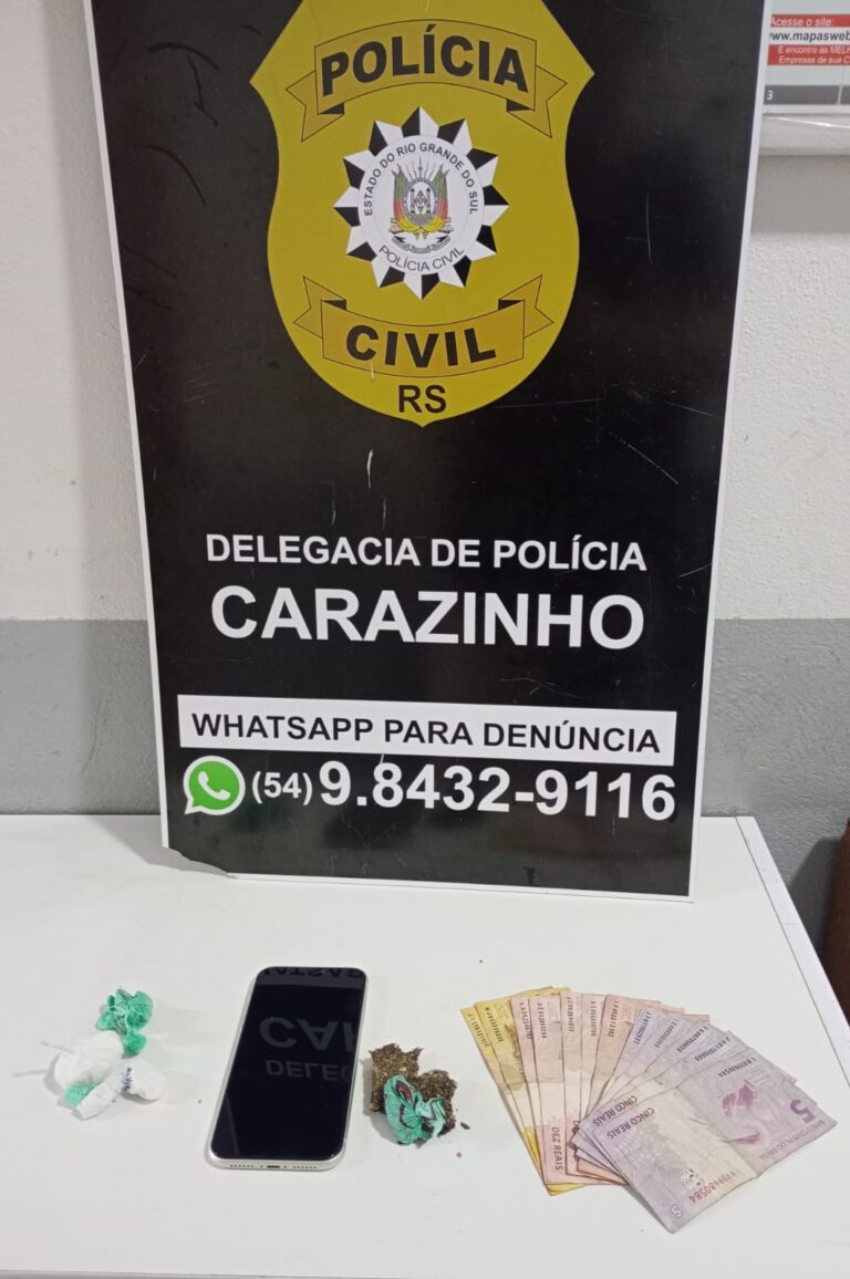 Na manhã desta sexta-feira (20), a Polícia Civil prendeu um homem em flagrante por tráfico de drogas em Carazinho. A ação foi