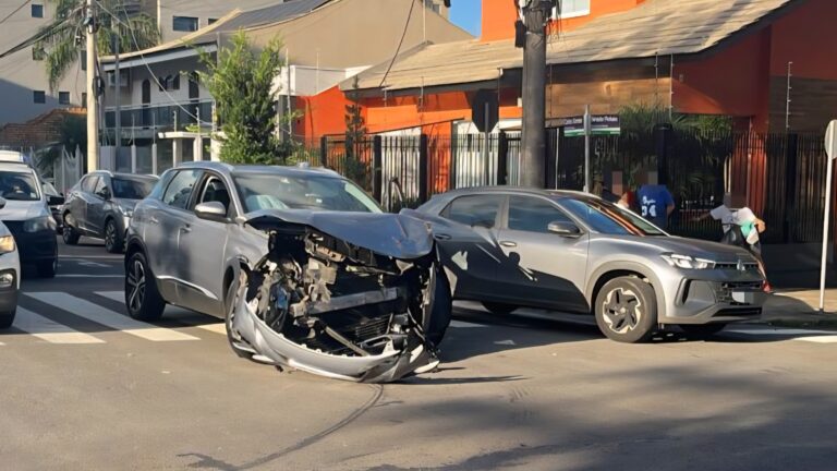 Na tarde desta quarta-feira (18), uma colisão entre dois veículos, após invasão de preferencial, foi registrada no cruzamento da Rua Senador Pinheiro