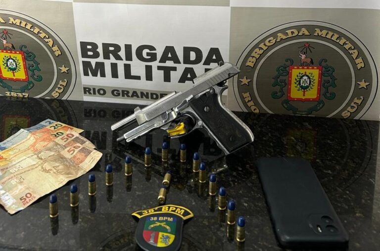Na tarde desta sexta-feira (10), a Brigada Militar prendeu um homem por porte irregular de arma de fogo de uso restrito no