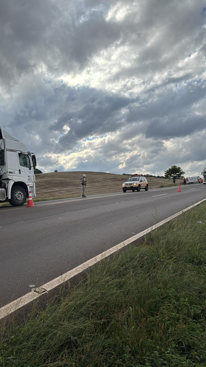 Na manhã desta quinta-feira (16), um caminhão se envolveu em um acidente de trânsito no km 44 da ERS-135, no trecho entre