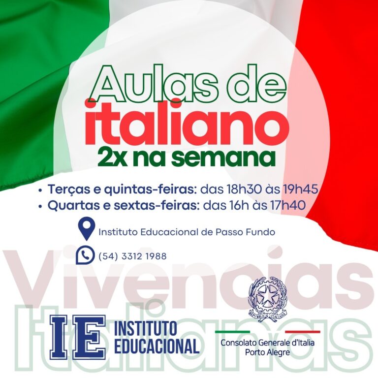 Estão abertas as inscrições para as aulas de italiano oferecidas pelo Instituto Educacional de Passo Fundo. As aulas acontecerão duas vezes por