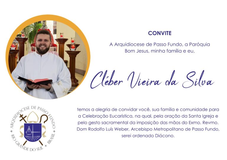 A Arquidiocese de Passo Fundo se prepara para acolher um novo diácono. Trata-se do seminarista Cléber Vieira da Silva. A celebração de