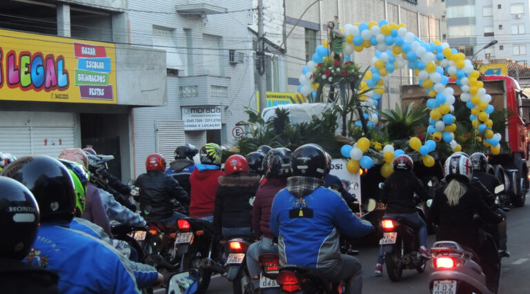 A procissão em honra à São Cristóvão começou por volta das 7h em Passo Fundo. Milhares de motoristas participam da carreata e