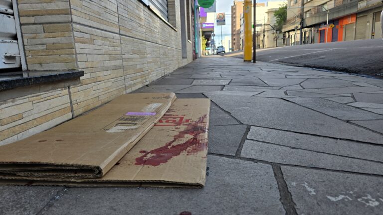 Na manhã deste domingo (25), por volta das 7h45, um homem foi encontrado caído e sangrando na Rua Coronel Chicuta, no centro