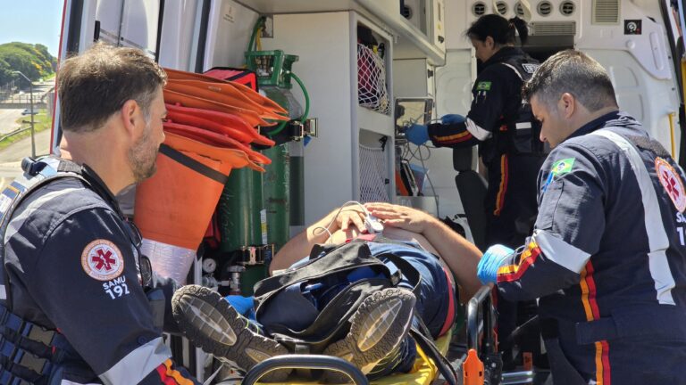 Na tarde desta sexta-feira (23), um motoboy ficou ferido após um acidente de trânsito registrado na Avenida Brasil, no Centro de Passo