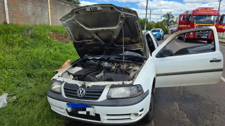 Na tarde desta terça-feira (20), um Volkswagen Gol com placas no padrão Mercosul teve o interior totalmente destruído após pegar fogo na