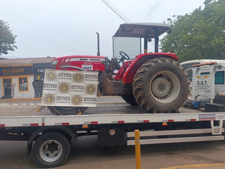 Na madrugada desta terça-feira (03), a Brigada Militar, por meio do 38º Batalhão de Polícia Militar, recuperou um trator furtado no município
