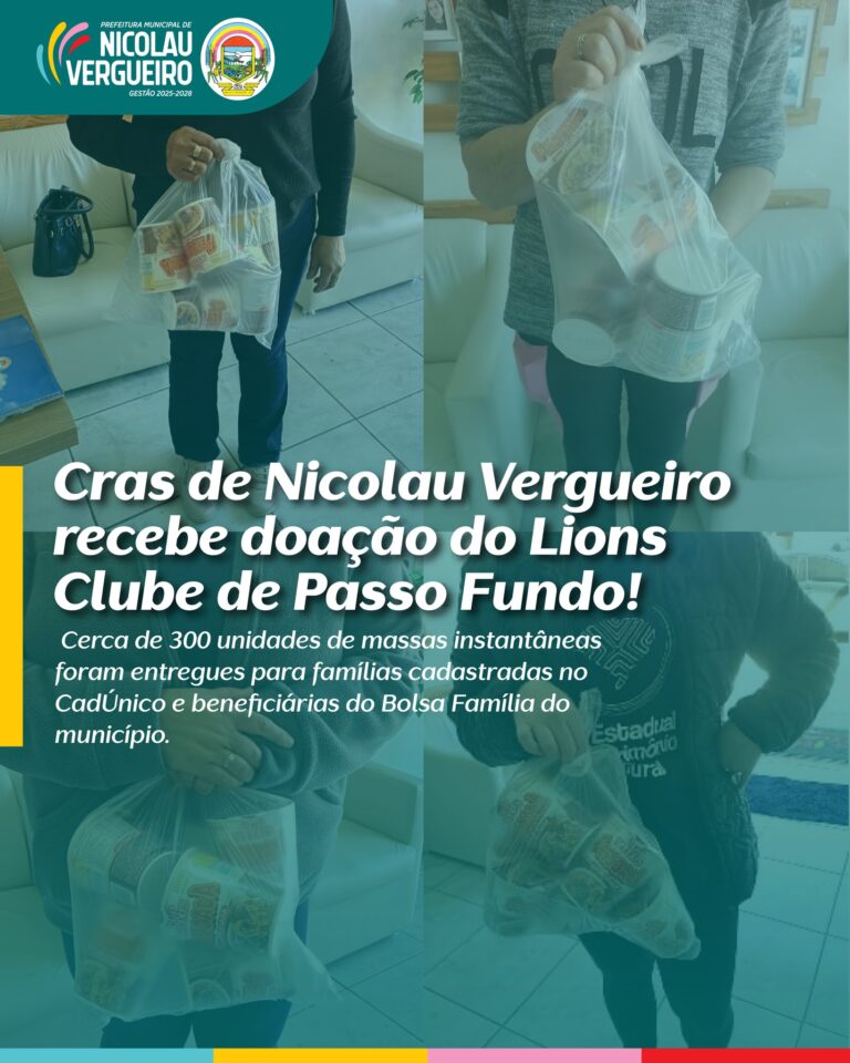 O Centro de Referência em Assistência Social (CRAS), de Nicolau Vergueiro, recebeu cerca de 300 unidades de massas instantâneas do Lions Clube