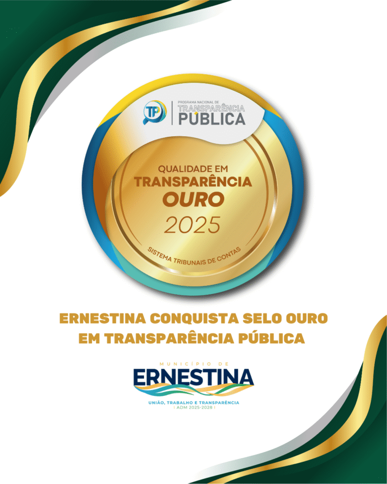 O trabalho técnico, coletivo e comprometido da administração municipal de Ernestina foi reconhecido com a conquista do Selo Ouro em Transparência Pública