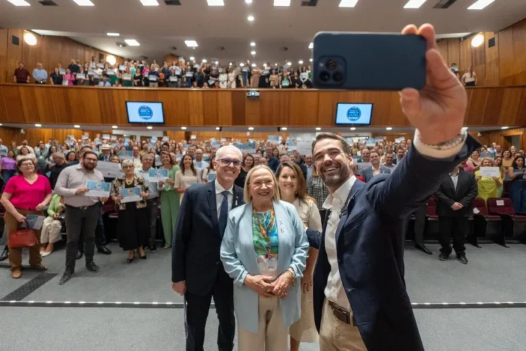 O governador Eduardo Leite participou, nesta quinta-feira (5/12), da entrega do Selo Município Amigo da Vacina, que valoriza as estratégias de imunização adotadas pelas